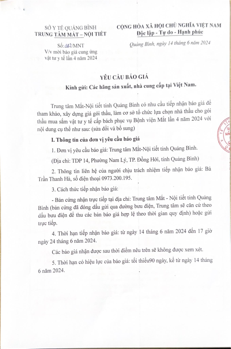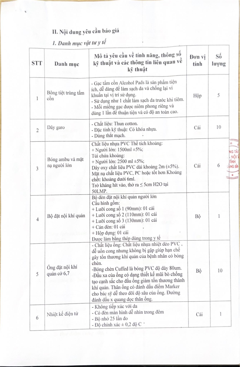 YÊU CẦU BÁO GIÁ VẬT TƯ Y TẾ LẦN 2 NĂM 2024 4/16/2024 9:20:17 AM
