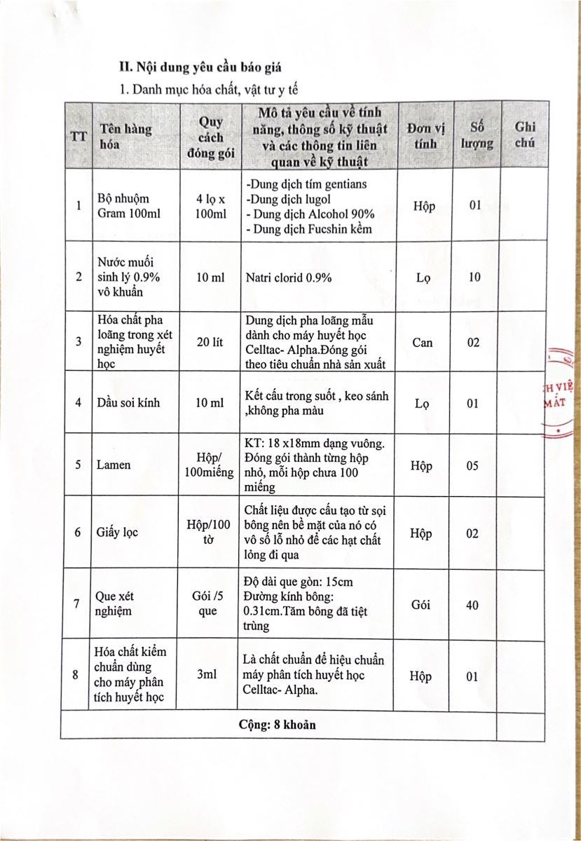 YÊU CẦU BÁO GIÁ VẬT TƯ Y TẾ LẦN 2 NĂM 2024 4/16/2024 9:20:17 AM