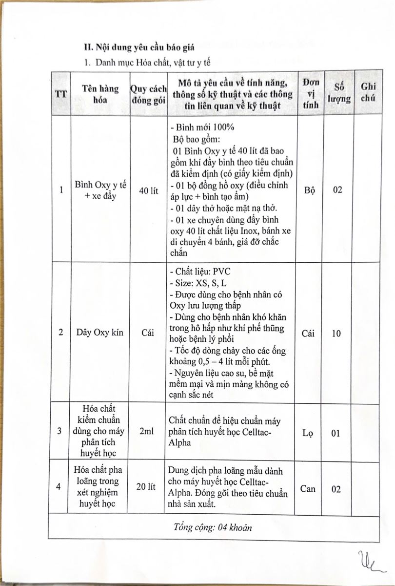 YÊU CẦU BÁO GIÁ VẬT TƯ Y TẾ LẦN 2 NĂM 2024 4/16/2024 9:20:17 AM